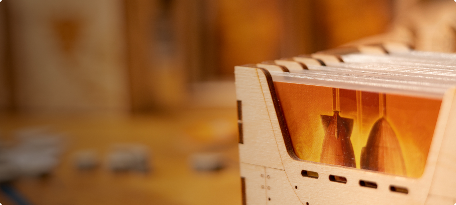 Prémium minőségű, környezetbarát, újrahasznosított anyagok, melyeket tűpontos lézervágással szabunk az adott játékra