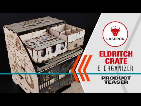 This unique crate was designed to hold Eldritch Horror™ by Fantasy Flight Games™ and all available expansions in one box. It features various card trays, token trays for quick setup and easy access during game.